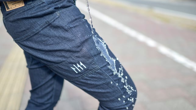 今回は屋外でのイベントですので、写真のように実際にジーンズに水をかけてもらって体験もできます!!