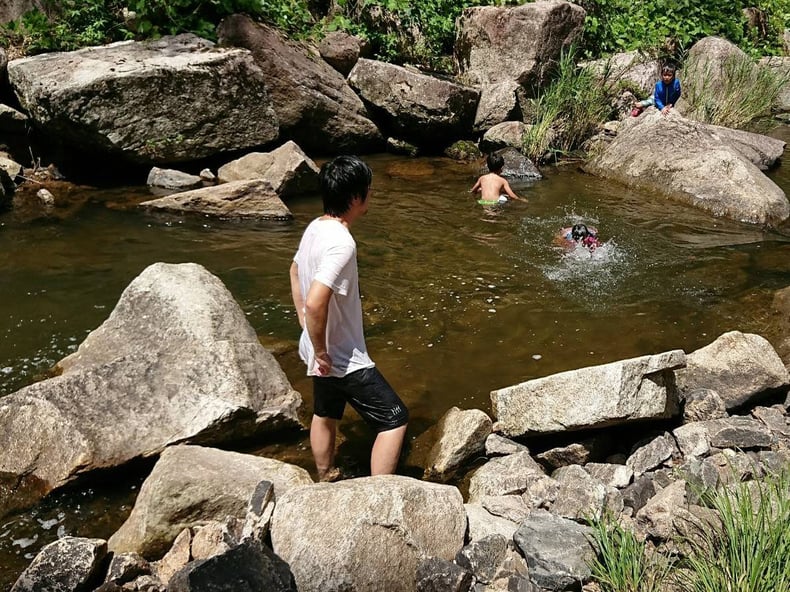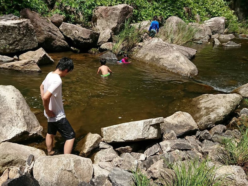 水遊びということで親も水の近くにいなければなりません。