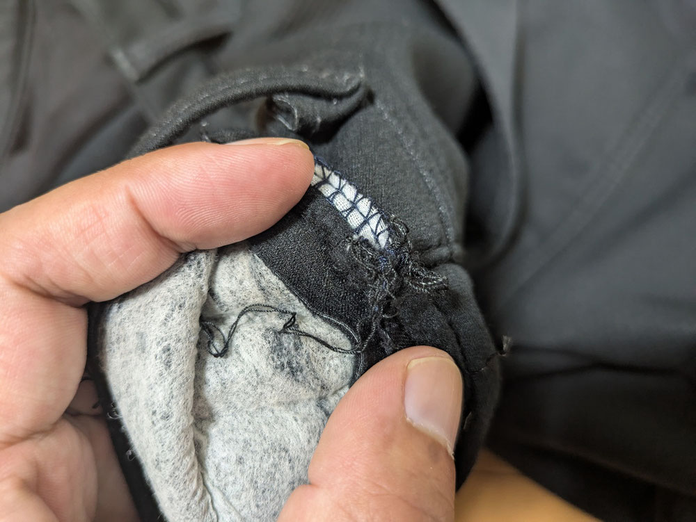 初回の防風パンツを縫ってもらった工場と今回の縫製工場が異なるので、確認が入りました。