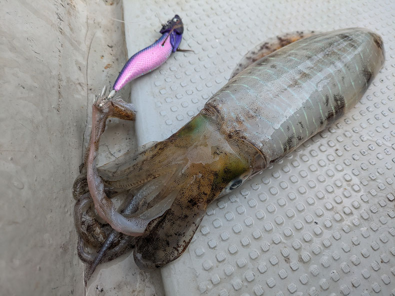 上のアオリを釣る前の時点で、こんな感じにガジガジ痕がついてました。