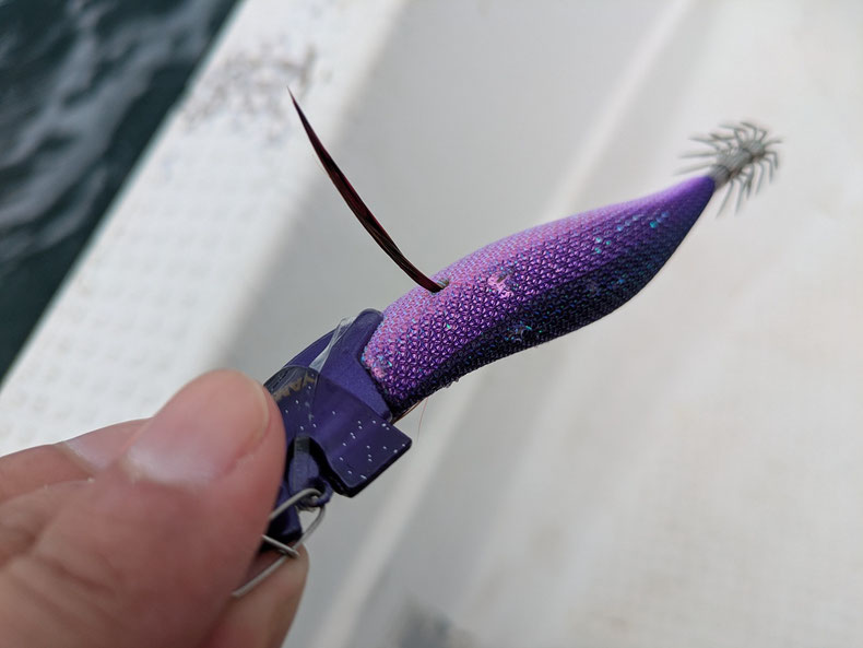 エギは、キーストンのデイブレイク3.3の35gに、エギ王TRシンカー15gをプラス。