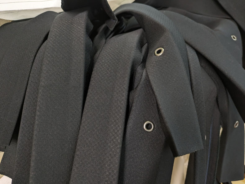 これから前身頃、後ろ身頃を内股外股の脇を縫い合わせていきます。
