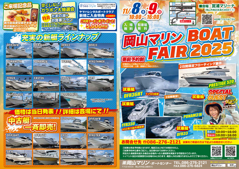 11月8日㈯、9日㈰の2日間、岡山マリンボートフェア2025が開催されます!!