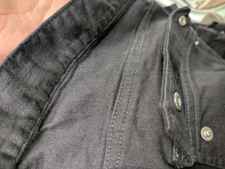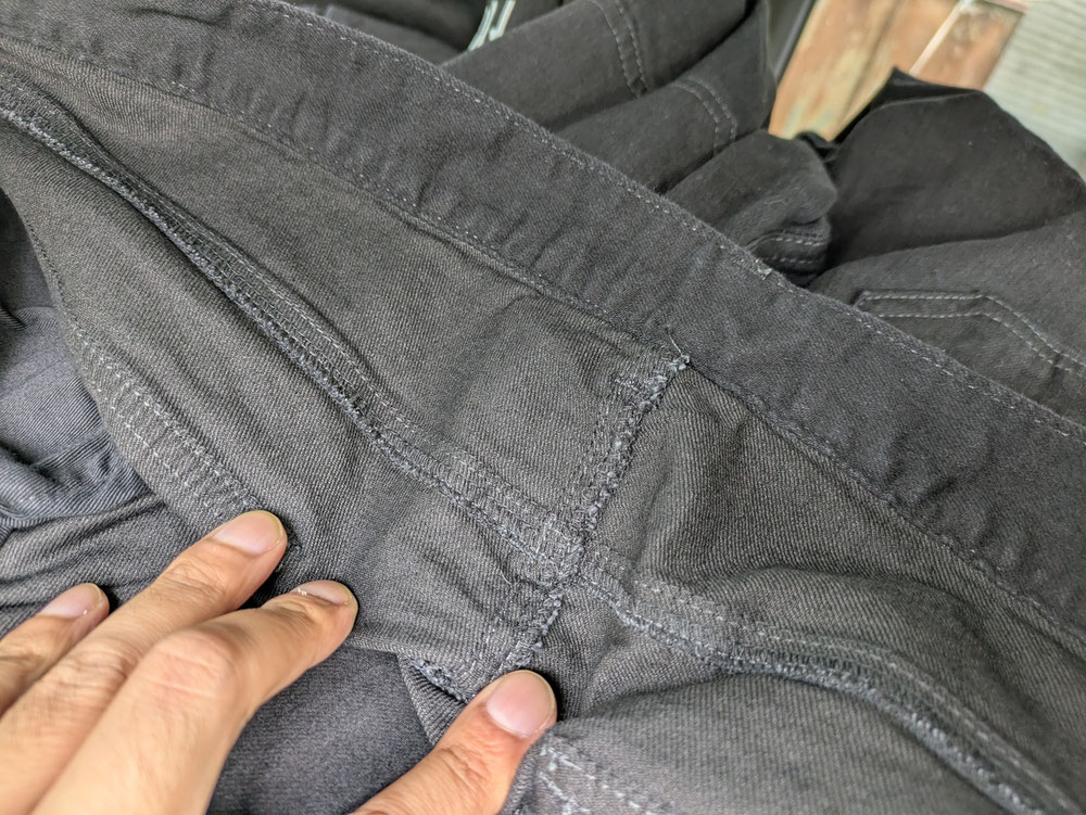 通常のジーンズだと、縫製の段階でボタンやネーム・紙パッチを取り付けたりする場合があります。
