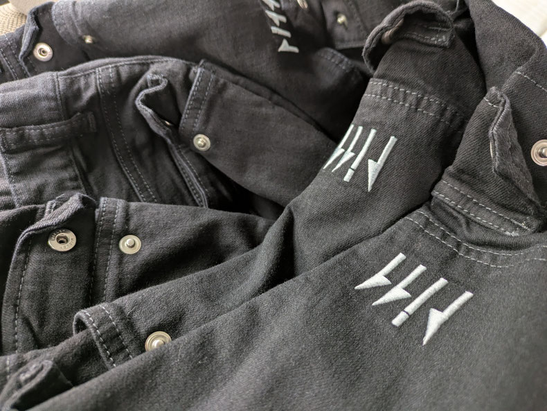 これから仕上げ屋さんにて、アイロン仕上げ、ブランドネーム・紙パッチ取付の工程となります。