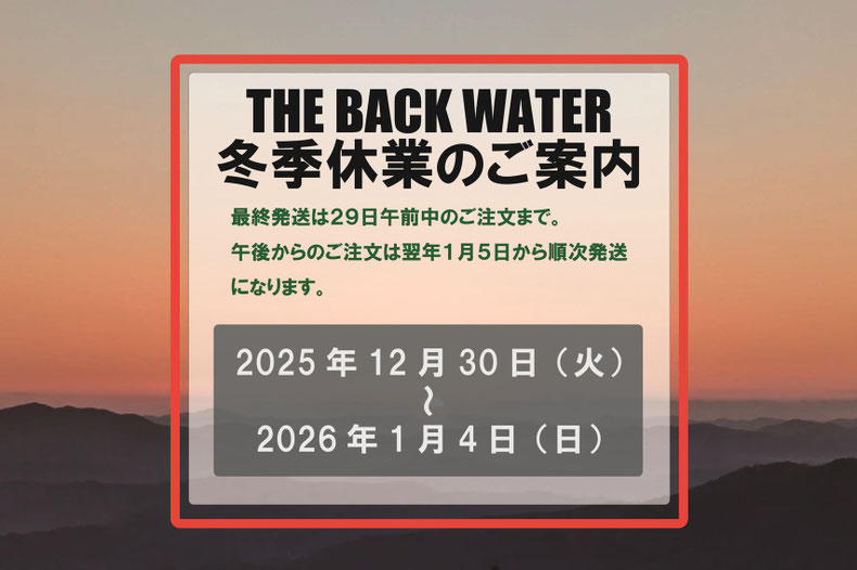 午後からのご注文は1月5日から順次発送となりますので、ご了承ください。