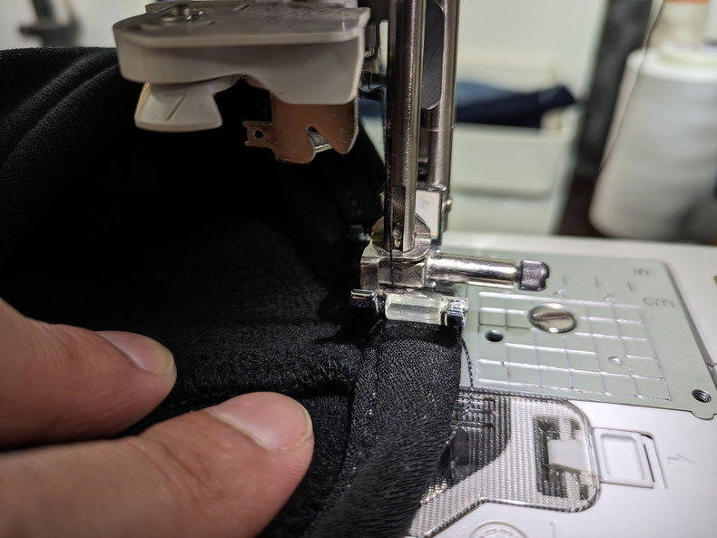 午前中は用事を済ませてから、午後にご依頼を頂いていた防風パンツの裾上げを。