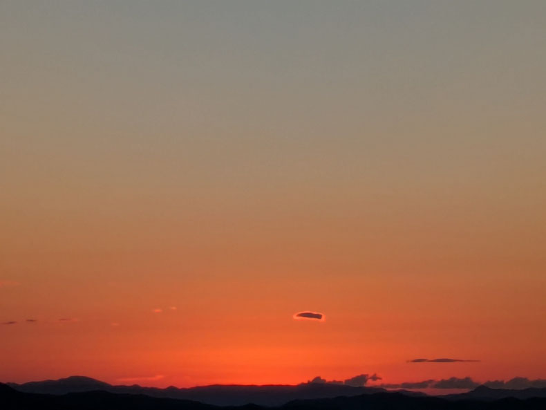 下から太陽の光に照らされて、浮いた雲がシルエットになって幻想的でした。