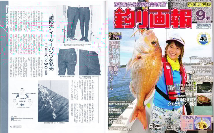 こんにちは! 本日は『新作が釣り画報さんに掲載されました』です!! 釣り画報さんは中国・四国地方の釣果情報やメソッド満載の釣り雑誌です。 中・四国で海釣りされている方なら、ご存知な方が多いはずです!!有名な釣り雑誌です!! 今回は、49ページまるまる1ページを使って頂き、 弊社9月初旬発売『新作デニムイージーパンツ特集』して頂けました♪...