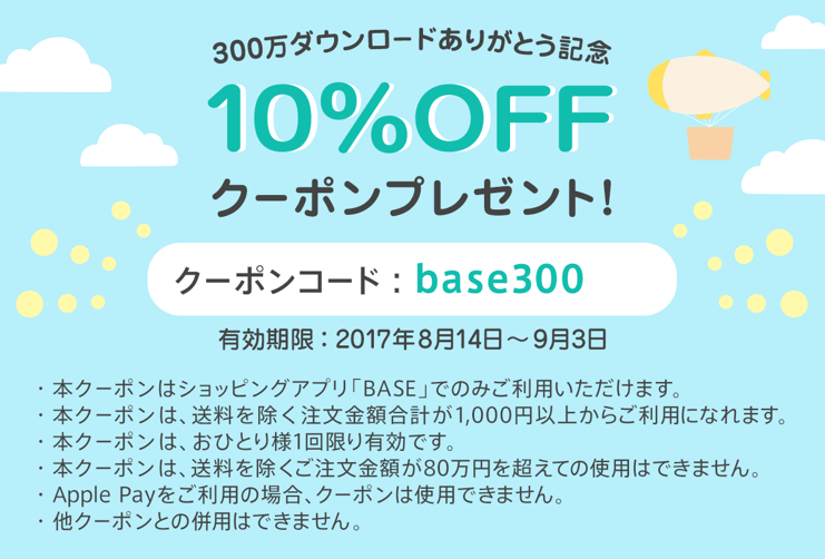 こんにちは! 本日2度目の更新です。 10%OFFクーポンのお知らせ!!を致します。 通常ではセールは致しませんが、僕の利用しているWEB STOREアプリのBASEが 300万ダウンロードありがとう記念ということで、 BASEが10%OFFクーポンを発行しています。 ということで、 弊社も便乗(笑) 新作デニムイージーパンツと9月でTHE BACK WATER 2周年ということもあり、...