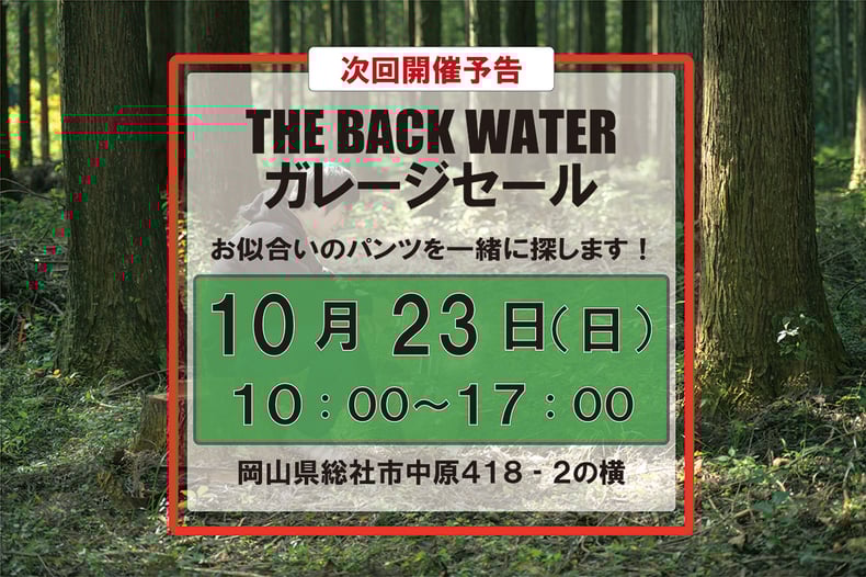 こんにちは! 次回のガレージセールのご案内です。 次回は10月23日㈰に開催いたします!! おそらくですが、ガレージセールでも次回新作のめっちゃ伸びるジーンズを販売できるかな??と思っています。 まだ確実ではないですが、、、。