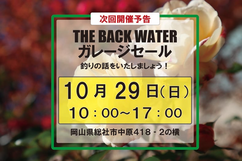 こんにちは! 岡山南部は久しぶりに雨が降っています。 最近全く雨が降っていなかったので、めぐみの雨となってくれたら良いな~ なにせ川も池も水がない。 池は例年より水少ないんじゃないかと思います。 あと水質が悪い。 この雨で水質が多少良くなって、秋爆を期待しています。 さて明後日、日曜日はガレージセールを行います。...