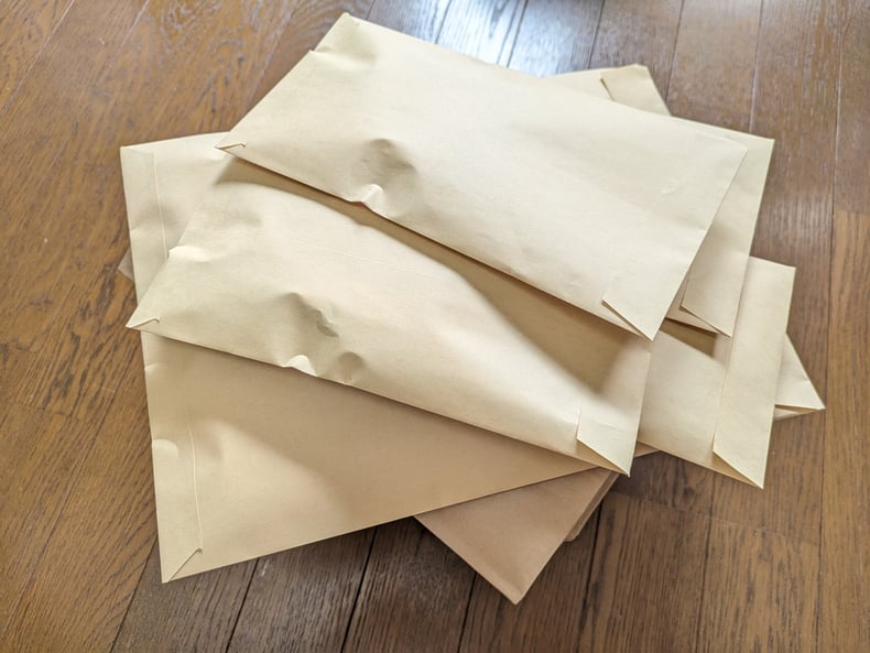 こんにちは! パターンを整理していました。 この紙がジーンズの型紙です。 この型紙をもとに生地を裁断したり、縫いの確認などをしたりします。 ちなみに生地を裁断するためのパターンは、この紙の場合もありますし、もっと肉厚の型紙を使う場合もありますし、紙を使わないこともあります。 裁断をするにもさまざまなパターンが存在します。...