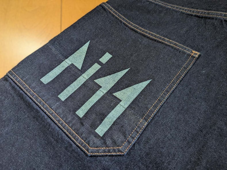 こんにちは! 今日はご注文いただいたジーンズにレーザー加工オプションをさせて頂きました。 今回はTHE BACK WATERアイコンロゴ。 レーザーオプションは2つあって、もう1つはTHE BACK WATERの文字入れになります。 レーザーオプションは僕自身で入れます。